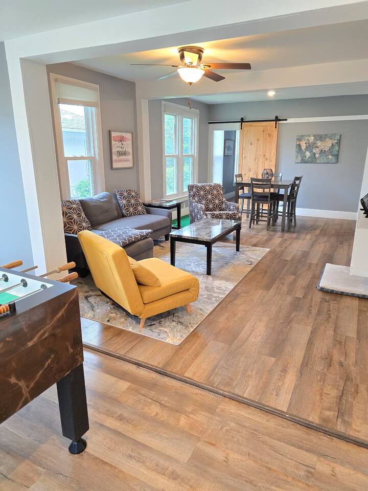 The Lounge #2: Your Stress-Free Sioux Falls Home Base We know what it’s like to travel—you just want to drop your bags, find a comfortable spot to sit, and feel like you’ve actually arrived. We designed The Lounge #2 to be that place. Whether you’re here for show at the PREMIER Center, work assignment, a collegiate game, or a show at the Pavilion, this home is set up to help you hit the ground running (or relaxing). 🌙 Sleep Your Way We’ve made sure everyone in your group has a comfortable spot to land. The "Good" Stuff: Two private bedrooms feature queen JUNA mattresses. We don't believe in "rental quality" sleep; we want you to wake up feeling great. Flexible Space: The front bedroom pulls double-duty with a pull-out couch and its own TV—perfect for kids or a second "hangout" space. 🏡 A Layout That Works for Real Life The Productivity Corner: If you’re here for work or charting, we’ve got a dedicated desk and fast Wi-Fi ready for you. The Fun Factor: When the work is done, head to the game room for some coin-op foosball or practice your short game on our indoor putting range. It’s a total hit for kids and adults alike. The Practical Details: • Our kitchen is fully stocked and ready for actual cooking—not just reheating • Washer and dryer available in the basement for those longer stays • Fully fenced yard so your pup can travel with you. Thoughtful Extras: Traveling with a little one? We have baby gear at the house so you can save some trunk space. 📍 The Best of Both Worlds: Central & Quiet One of the best things about this location is the peace and quiet; we are tucked away in a calm, residential neighborhood. Minutes Away: PREMIER Center, Sanford, Collegiate games at Augustana or USF, or Downtown Family Fun: Close to the Great Plains Zoo and Midco Aquatic Center. ⭐ Need a spot that’s close to everything but still lets you sleep in? Reserve your dates at The Lounge #2!