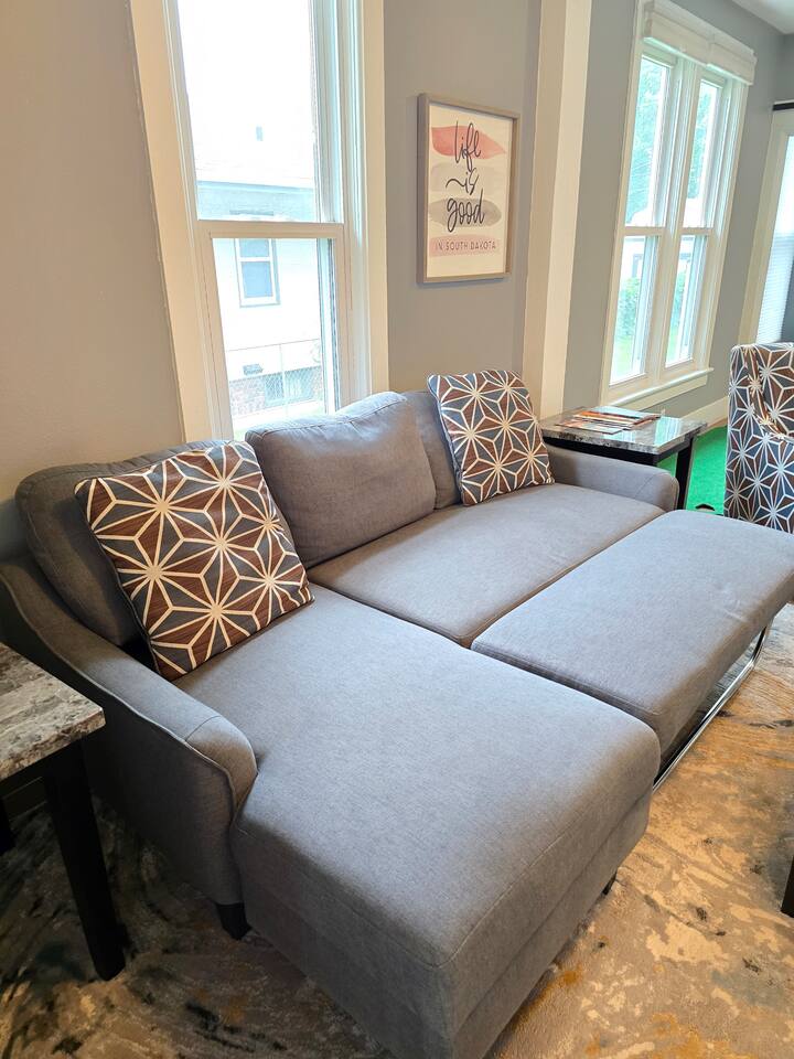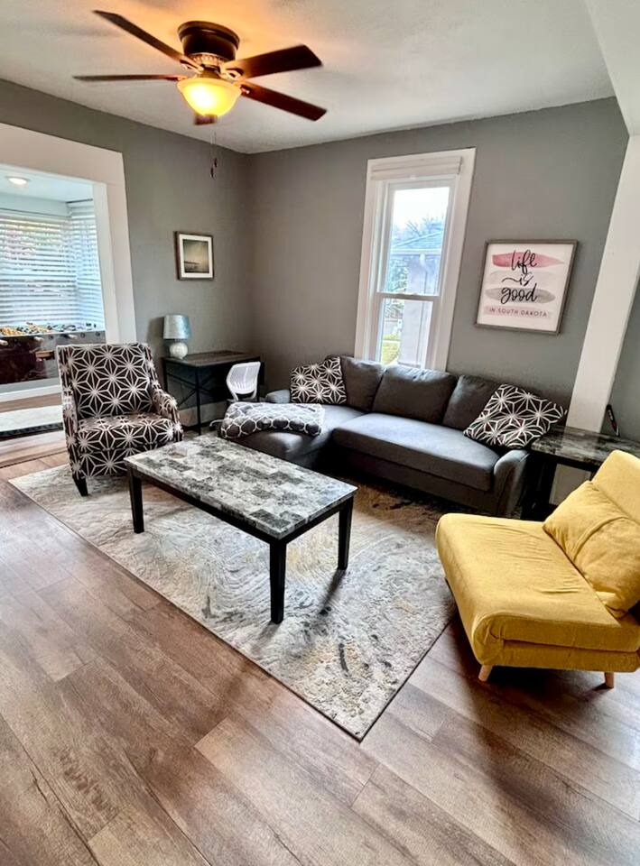 Stay at The Lounge #2, a comfortable & centrally located 2-bedroom home in a quiet neighborhood. ✔ Premium queen beds ✔ Fast Wi-Fi + dedicated workspace ✔ Full kitchen w/ coffee & tea ✔ Washer & dryer ✔ Fenced, pet-friendly backyard Relax with a 65” Smart TV, bar-style foosball table & indoor putting green, plus outdoor seating & grill. Minutes to: DT, Sanford Hospital, PREMIER Center, Augustana, USF, Zoo, Midco Aquatic Center & FSD Airport. Perfect for families, couples, & weekend getaways