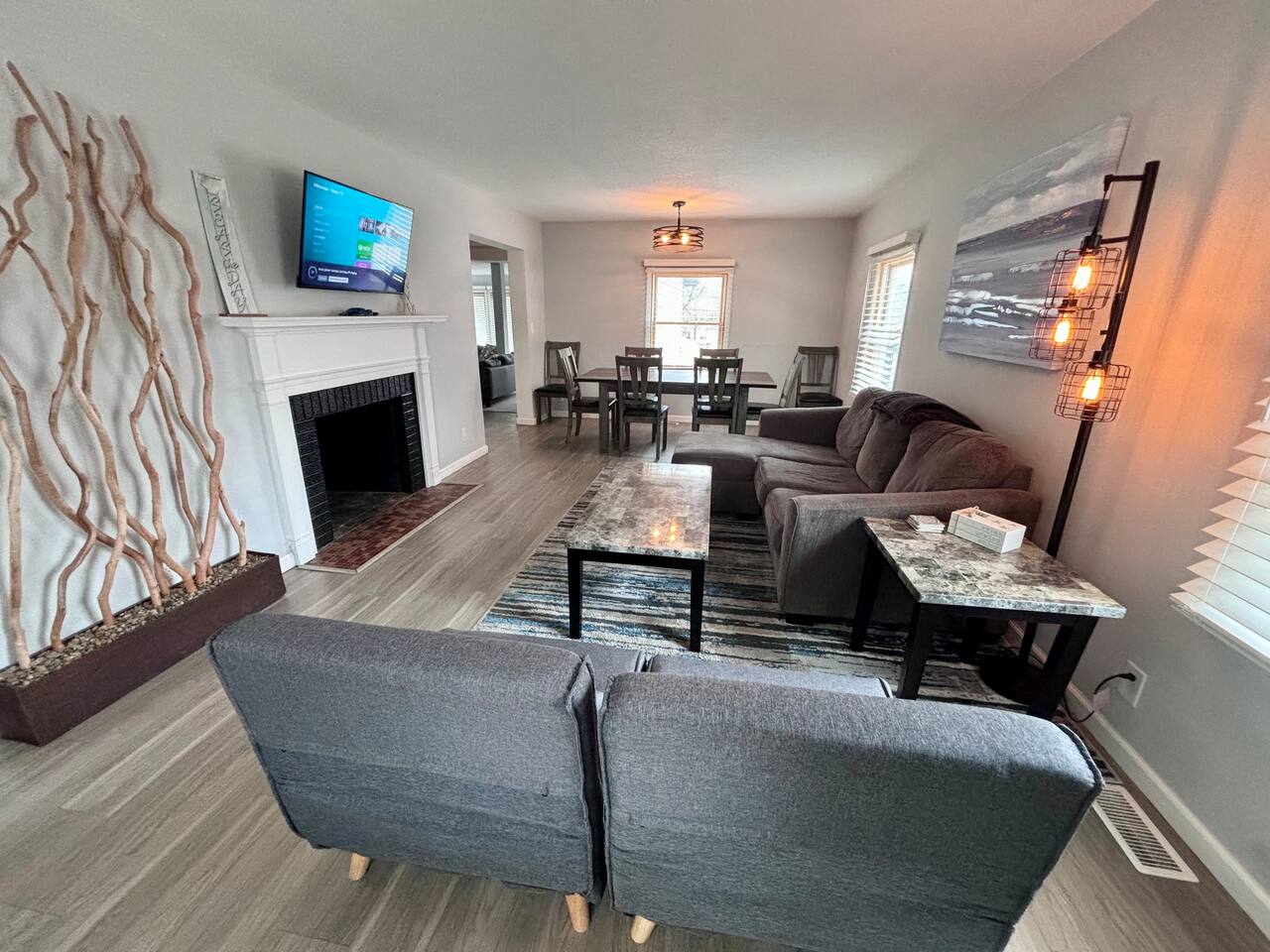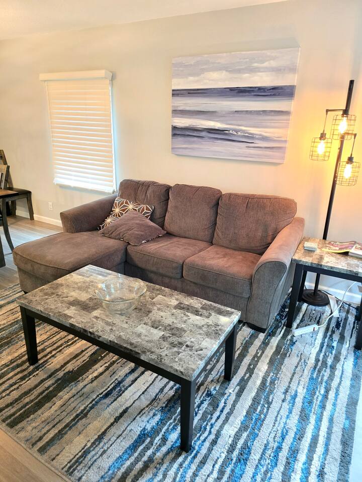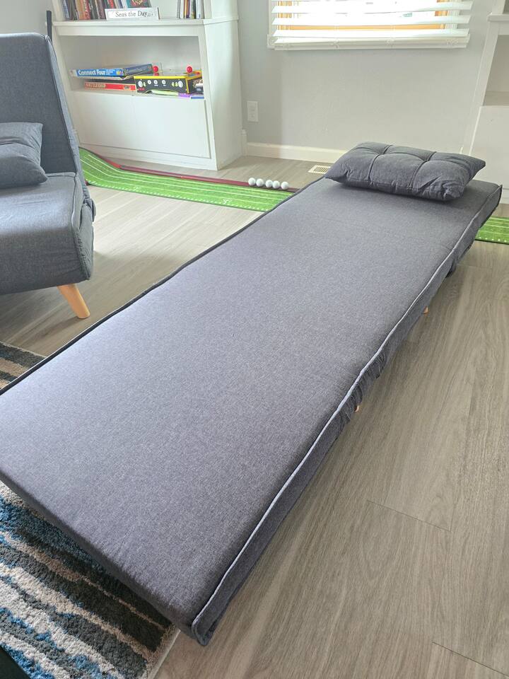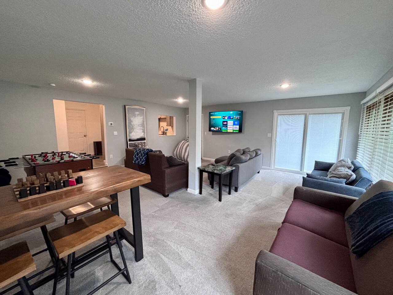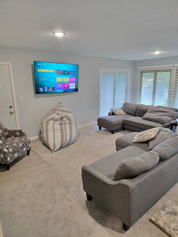 Welcome to Oasis Lounge #7 – a spacious, updated 4-bedroom, 2.5-bath home in Sioux Falls that’s made for gathering, relaxing, and spreading out in comfort. Perfect for families, friend groups, teams, work trips, and longer stays, this home gives everyone room to breathe while still feeling connected. ⸻ 🛏️ Room for Everyone – Thoughtful Bedroom Layout Sleep arrangements are set up to make group stays easy: - Main-floor bedroom for easy access & extra privacy (Ideal for grandparents, early risers, or anyone avoiding stairs) - Three upstairs bedrooms with luxurious JUNA queen beds - Primary bedroom with private ensuite - Optional divider between connecting rooms upstairs for flexible privacy - Two full bathrooms upstairs, including the ensuite, plus half bath on the main level Designed to keep everyone comfortable, no matter your group size. ⸻ 🛋️ Two Living Rooms = Twice the Comfort Spread out across two bright, inviting living areas: - Two Smart TVs for streaming your favorite shows - Books & board games for unplugged time - Two pull-out memory foam sofas for extra sleeping options - Cozy seating perfect for: Movie nights, Game nights, & Quiet morning coffee Everyone gets their own cozy corner to land. ⸻ 🍳 Fully Equipped Kitchen & Easy Dining - Cook together, snack, or just reheat leftovers with ease: - Fully equipped kitchen with everything you need to cook, prep, and serve - Coffee & tea provided to start your morning off right - Enjoy meals at the indoor dining table or Head out to the fenced backyard for: - Fresh air - Propane grill for easy BBQ nights - Outdoor dining area Great for families, meal prepping for events, or guests staying for work assignments. ⸻ 🎯 Built in Fun for All Ages You don’t have to leave the house to stay entertained: - Foosball - Chess - A variety of board games - Fast WiFi for streaming, working, or staying connected Perfect for kids, adults, and late-night friendly competitions. ⸻ 🧺Ready for Longer Stays Traveling for work, sports, or an extended visit?: - Washer and dryer in the basement - Makes it easy to pack lighter and stay longer without stress ⸻ 📍 Central Sioux Falls - Close to Everything Enjoy a quiet neighborhood feel with quick access to local favorites: - Minutes to Downtown Sioux Falls - Close to Sanford Hospital - Near the Great Plains Zoo - Short drive to restaurants, breweries, parks, and events You’ll also have: - Free driveway parking - Additional off-street parking for extra vehicles ⸻ ✨ Private, Comfortable & All Yours - No shared spaces - Off-site hosts so you have complete privacy - Smooth, contactless check-in and a home that’s set up for real-life comfort If you’re looking for a place where your whole group can relax, recharge, and feel at home, the Oasis Lounge is it. Book your stay now and make this your home base in Sioux Falls.