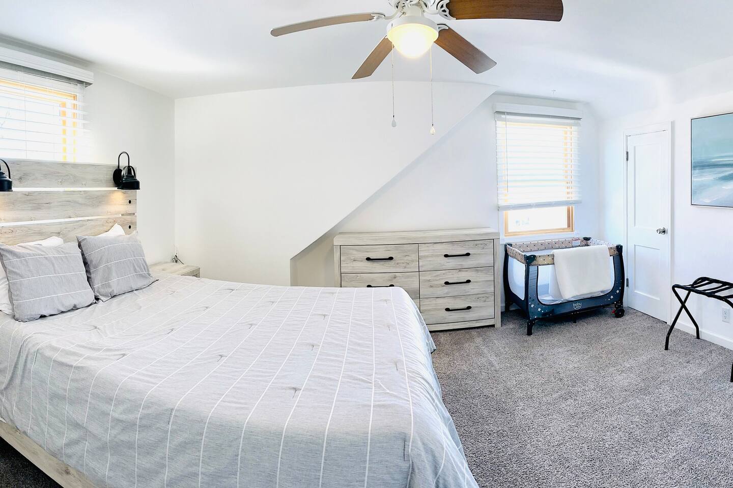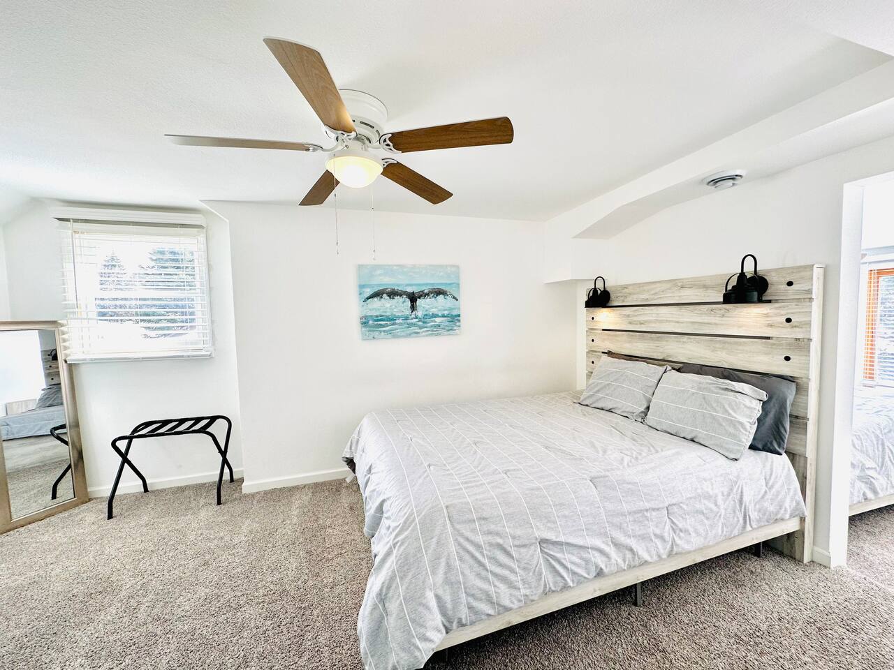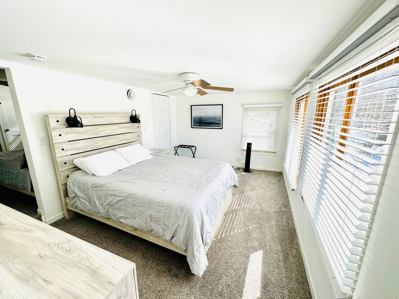 Welcome to Oasis Lounge #7 – a spacious, updated 4-bedroom, 2.5-bath home in Sioux Falls that’s made for gathering, relaxing, and spreading out in comfort. Perfect for families, friend groups, teams, work trips, and longer stays, this home gives everyone room to breathe while still feeling connected. ⸻ 🛏️ Room for Everyone – Thoughtful Bedroom Layout Sleep arrangements are set up to make group stays easy: - Main-floor bedroom for easy access & extra privacy (Ideal for grandparents, early risers, or anyone avoiding stairs) - Three upstairs bedrooms with luxurious JUNA queen beds - Primary bedroom with private ensuite - Optional divider between connecting rooms upstairs for flexible privacy - Two full bathrooms upstairs, including the ensuite, plus half bath on the main level Designed to keep everyone comfortable, no matter your group size. ⸻ 🛋️ Two Living Rooms = Twice the Comfort Spread out across two bright, inviting living areas: - Two Smart TVs for streaming your favorite shows - Books & board games for unplugged time - Two pull-out memory foam sofas for extra sleeping options - Cozy seating perfect for: Movie nights, Game nights, & Quiet morning coffee Everyone gets their own cozy corner to land. ⸻ 🍳 Fully Equipped Kitchen & Easy Dining - Cook together, snack, or just reheat leftovers with ease: - Fully equipped kitchen with everything you need to cook, prep, and serve - Coffee & tea provided to start your morning off right - Enjoy meals at the indoor dining table or Head out to the fenced backyard for: - Fresh air - Propane grill for easy BBQ nights - Outdoor dining area Great for families, meal prepping for events, or guests staying for work assignments. ⸻ 🎯 Built in Fun for All Ages You don’t have to leave the house to stay entertained: - Foosball - Chess - A variety of board games - Fast WiFi for streaming, working, or staying connected Perfect for kids, adults, and late-night friendly competitions. ⸻ 🧺Ready for Longer Stays Traveling for work, sports, or an extended visit?: - Washer and dryer in the basement - Makes it easy to pack lighter and stay longer without stress ⸻ 📍 Central Sioux Falls - Close to Everything Enjoy a quiet neighborhood feel with quick access to local favorites: - Minutes to Downtown Sioux Falls - Close to Sanford Hospital - Near the Great Plains Zoo - Short drive to restaurants, breweries, parks, and events You’ll also have: - Free driveway parking - Additional off-street parking for extra vehicles ⸻ ✨ Private, Comfortable & All Yours - No shared spaces - Off-site hosts so you have complete privacy - Smooth, contactless check-in and a home that’s set up for real-life comfort If you’re looking for a place where your whole group can relax, recharge, and feel at home, the Oasis Lounge is it. Book your stay now and make this your home base in Sioux Falls.